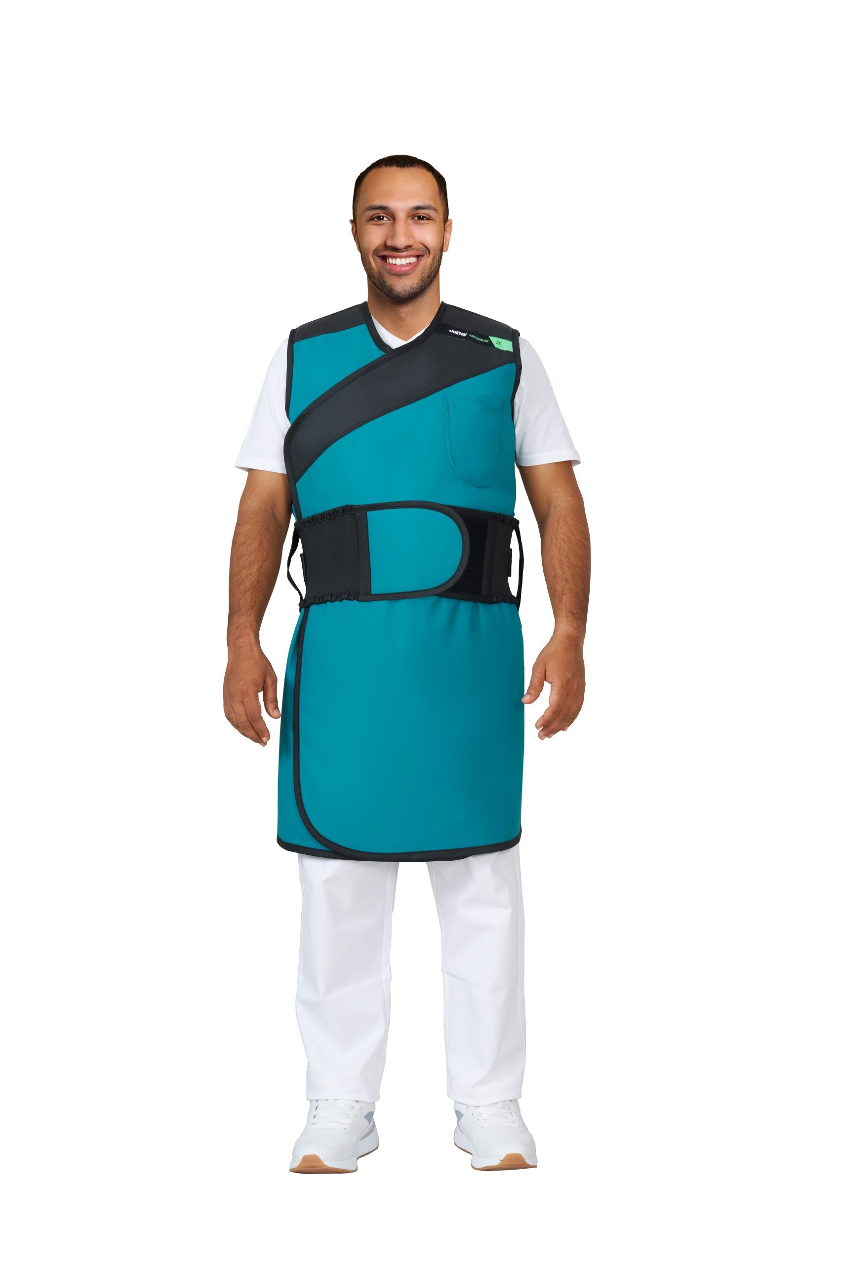 Grembiule intero realizzato per la protezione totale del corpo, completamente avvolgente per garantire la massima protezione con una riduzione di peso rispetto al modello con chiusura frontale. Protezione anteriore in tre diverse tipologie di equivalenza piombo 0,25-0,35-0,50 mm e protezione posteriore unica da 0,25 mm.